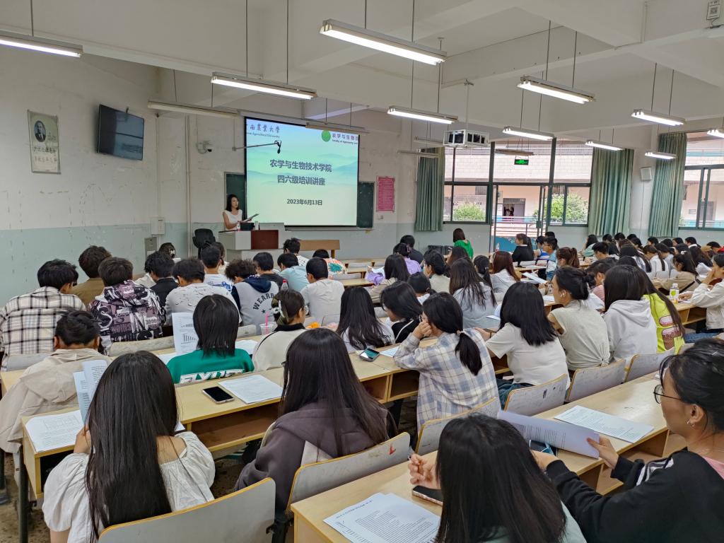 2023年6月13日,足球外围赔率 邀请海天考研培训宋雨曈老师在尚农楼1-16为150余名学生进行了大学英语四六级考前辅导。