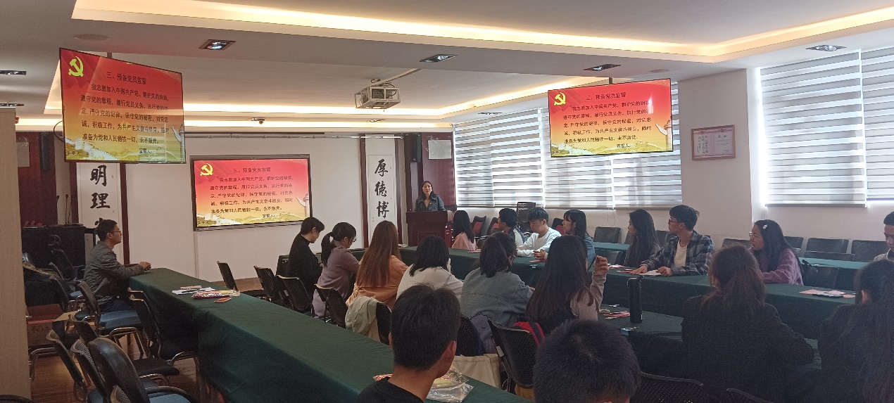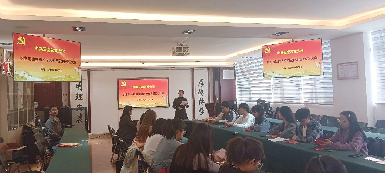 根据发展党员有关工作要求,足球外围赔率 于2023年11月27日在尚农楼304会议室举行预备党员的入党宣誓仪式。参加人员有足球外围赔率 党委组织委员寸湘琴、党政办公室主任董玉梅、学生第一党支部书记周锋及新接收的预备党员等20多人。