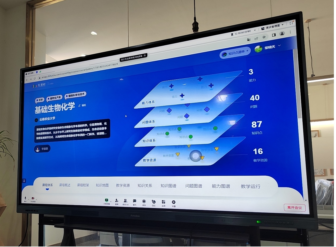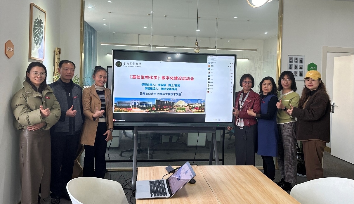 与智慧树技术平台签约,建设多门知识图谱课程。借此良机,基础生物化学黄大年式教师团队负责人字淑慧教授,邀请智慧树项目负责人柴啸天技术顾问,于2023年12月4日16:00在云南农业大学智慧树办公室召开 “《基础生物化学》数字化课程建设启动会”,课程组全体老师通过线上和线下参加了会议。