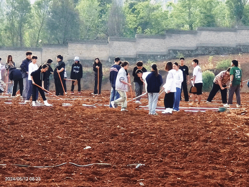 为了深入贯彻习近平总书记关于教育的重要论述,落实《中共中央国务院关于全面加强新时代大中小学劳动教育的意见》《中共中央国务院关于全面推进乡村振兴加快农业农村现代化的意见》、教育部《加强和改进涉农高校耕读教育工作方案》《中共云南省委云南省人民政府关于全面加强新时代大中小学劳动教育的实施意见》《云南农业大学加强和改进耕读教育工作实施方案》《云南农业大学全面加强新时代劳动教育实施方案》的总体要求,秉承学校“开学养正、耕读至诚”的大学精神,切实加强和改进耕读教育工作,大力培养知农爱农、勤耕重读新型人才,2024年5月12日,在作物遗传育种系教师指导下,2022级种子科学与工程班全体同学在校内实践教学基地开展了劳动实践教育活动。