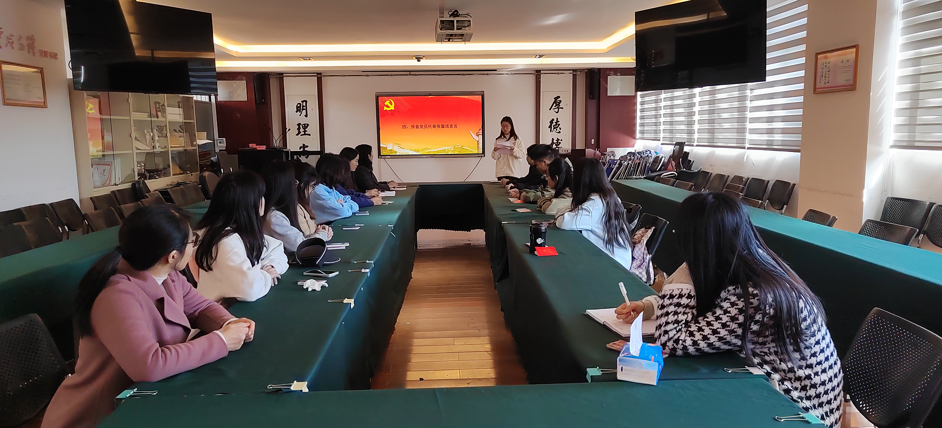 宣誓大会由董玉梅同志主持。首先到会人员全体起立奏唱国际歌,寸湘琴同志宣读预备党员名单;新发展党员们面向鲜红的党旗庄严宣誓。