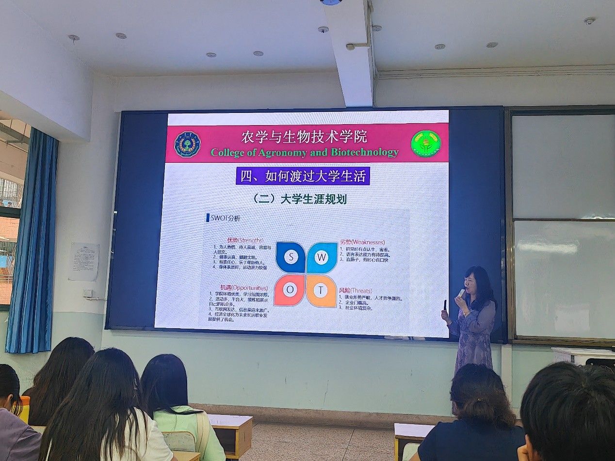 2025922日下午14:00,足球外围赔率 作物科学系在尚农楼2-18教室举办学农爱农、强农兴农的专业教育。作物科学系主任杨志清老师为2023级农学、智慧农业专业全体本科生作主题分享,引导学生夯实专业根基,科学规划求学路径。