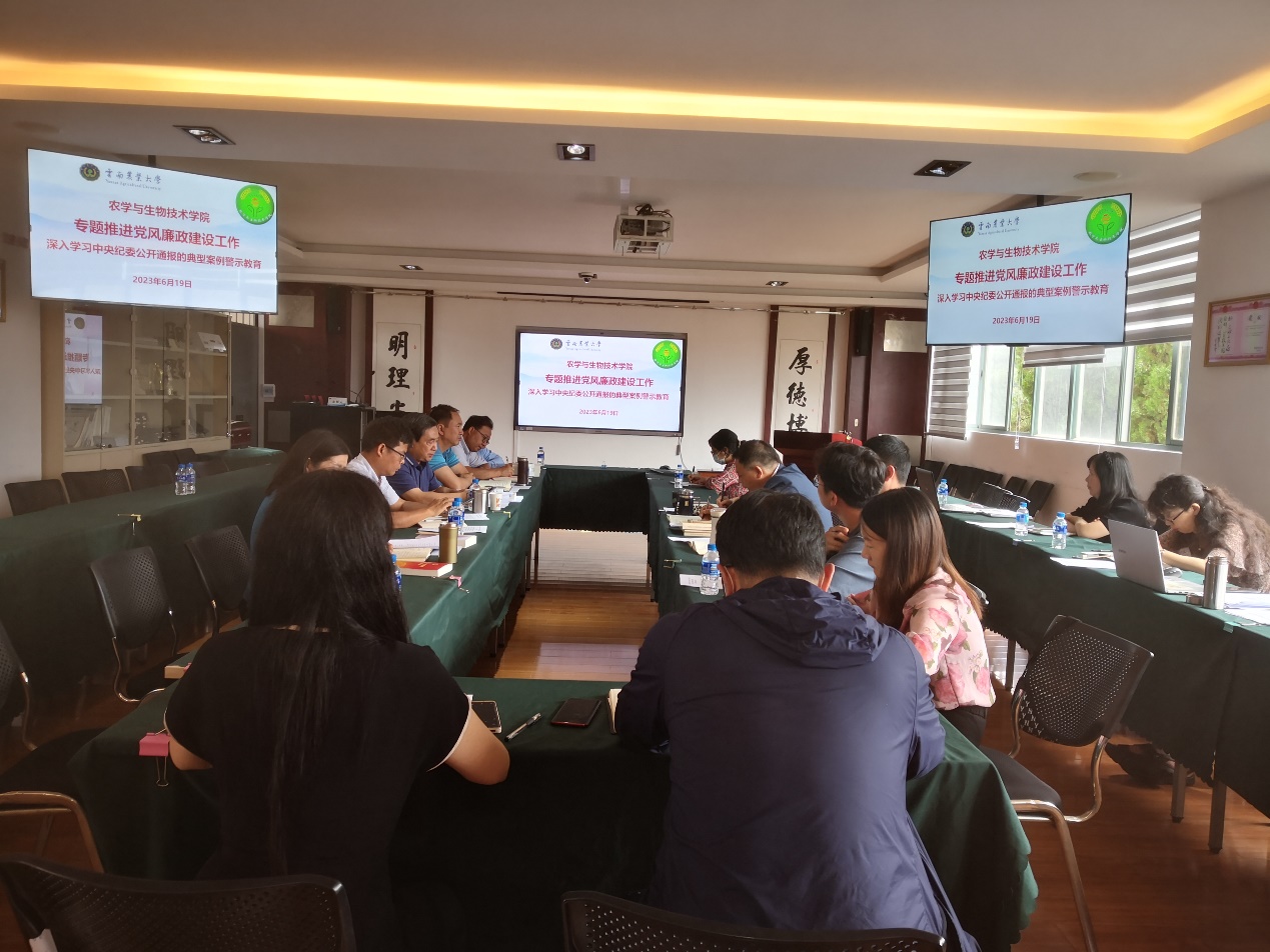 党委班子根据深化推进“清廉学校”建设系列行动工作方案(校党发〔2023〕38号)要求,结合“学习贯彻习近平新时代中国特色社会主义思想主题教育读书班”集中自学情况,李建宾院长领学了《云南农业大学关于开展2023年“树师德 正师风 铸师魂”师德师风专项整治的实施方案》,李富生书记领学了《关于落实“固堤行动”深入纠治违规吃喝和公款旅游或变相公款旅游等问题的工作提醒》,并按附件4以“小”见严纠“四风”“固堤行动”工作清单(三)(师德师风整治单元)的政治学习要求,开展了“专题推进党风廉政建设工作——深入学习中央纪委公开通报典型案例警示教育”,同时部署了纪委下发的《关于持之以恒正风肃纪确保 2023 年“五一”端午期间风清气正的工作提醒函》、《落实“固堤行动”深入纠治违规吃喝和公款旅游或变相公款旅游等问题的工作提醒》“固堤行动”推进工作。