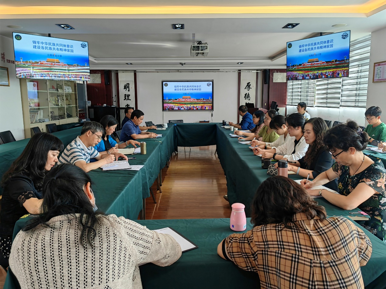 党委理论学习中心组(扩大)以“学习贯彻习近平总书记关于民族和宗教工作的重要论述及相关会议精神”和“学习落实本科教育教学审核评估工作宣讲会精神”为主题开展第八次集体学习。会议由党委书记李富生主持,党委委员、领导班子、各党支部书记、各系、所、中心科室负责人参加学习。