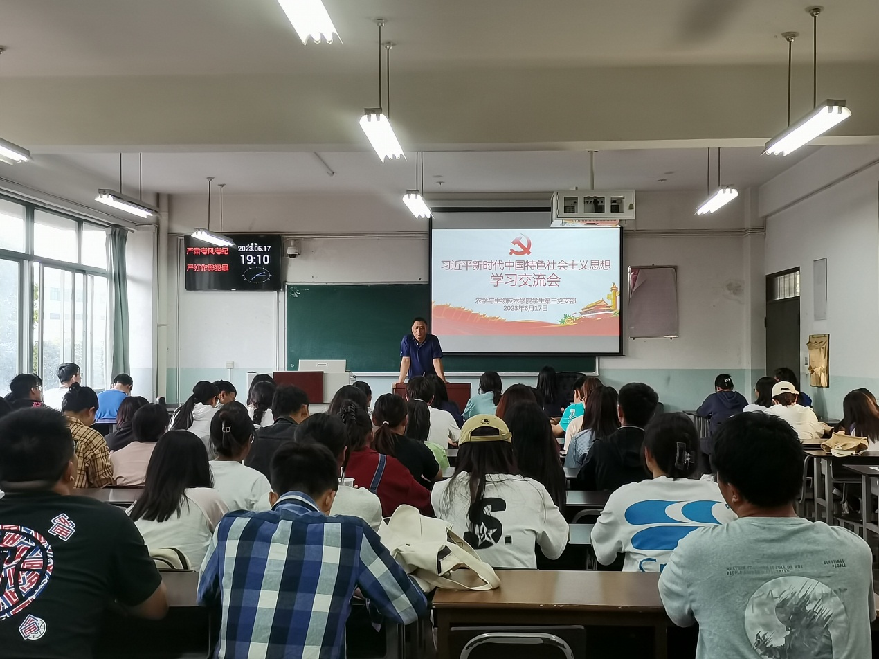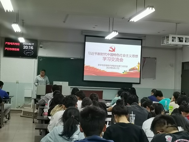 学生第三党支部全体党员于2023年6月17日晚在尚农楼3-11教室召开了习近平新时代中国特色社会主义思想学习交流会。支部全体党员、预备党员和入党积极分子参加了会议。会议由党支部书记康志钰主持。