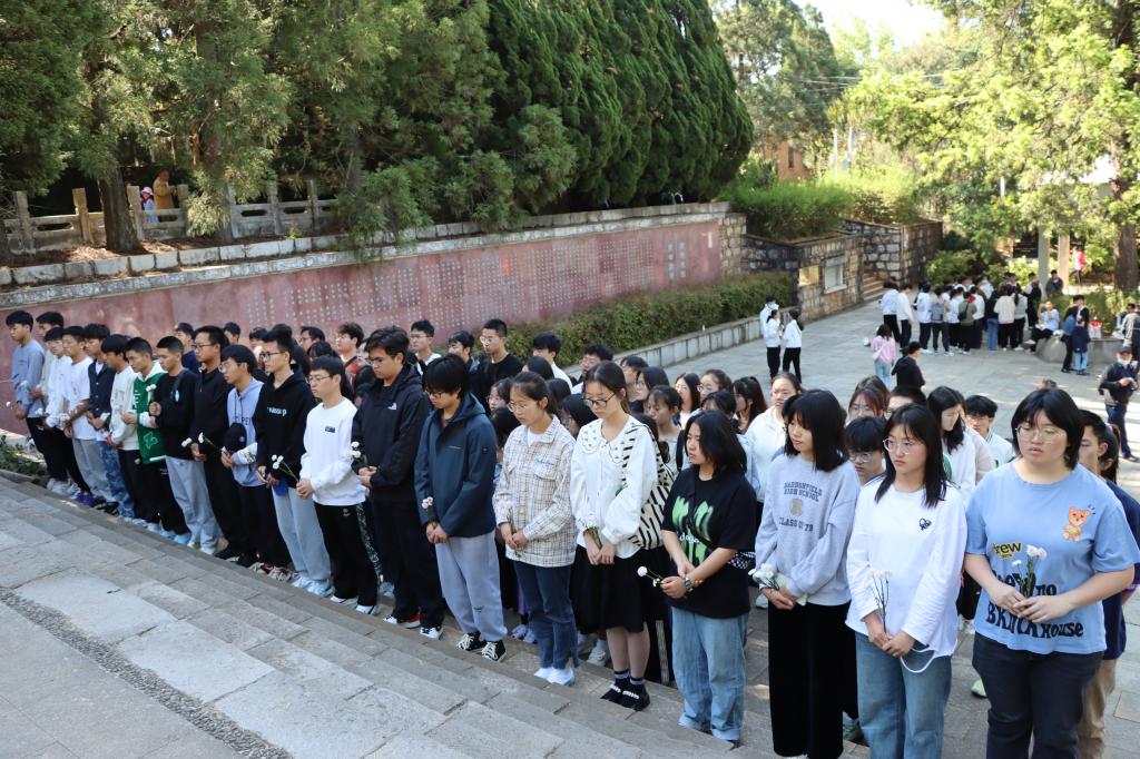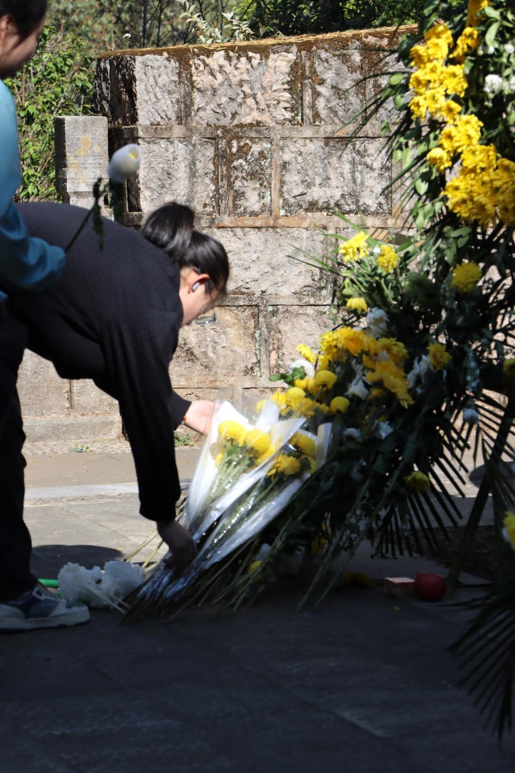 “血染山河创业开基扩壮志,功昭日月长征接力有来人。”“德有邻赤心三士,朝闻道碧血千秋。” 映着黑龙潭公园的樱与梅,苍松相护的烈士陵园四方亭上题着苍劲的对联。在陵园纪念园山墙上,以“南天忠烈,万古流芳”为题,书写着中共云南地下组织领导云南人民进行革命斗争的简史,以及为民主革命奋斗牺牲的云南籍共产党员革命烈士中重要人物的名字。