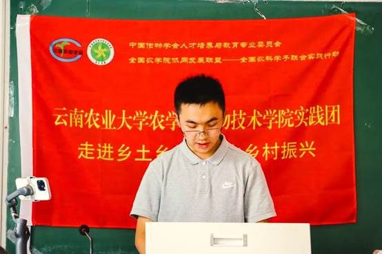实践队员代表吴宇哲同学代表全体实践队员进行发言,吴宇哲表示,此次“三下乡”活动,使命光荣、意义重大,这是真正践行“把论文写在祖国大地上”的一次光荣而艰巨的任务,全体实践队员定能以饱满的热情和坚定的信心圆满完成任务!