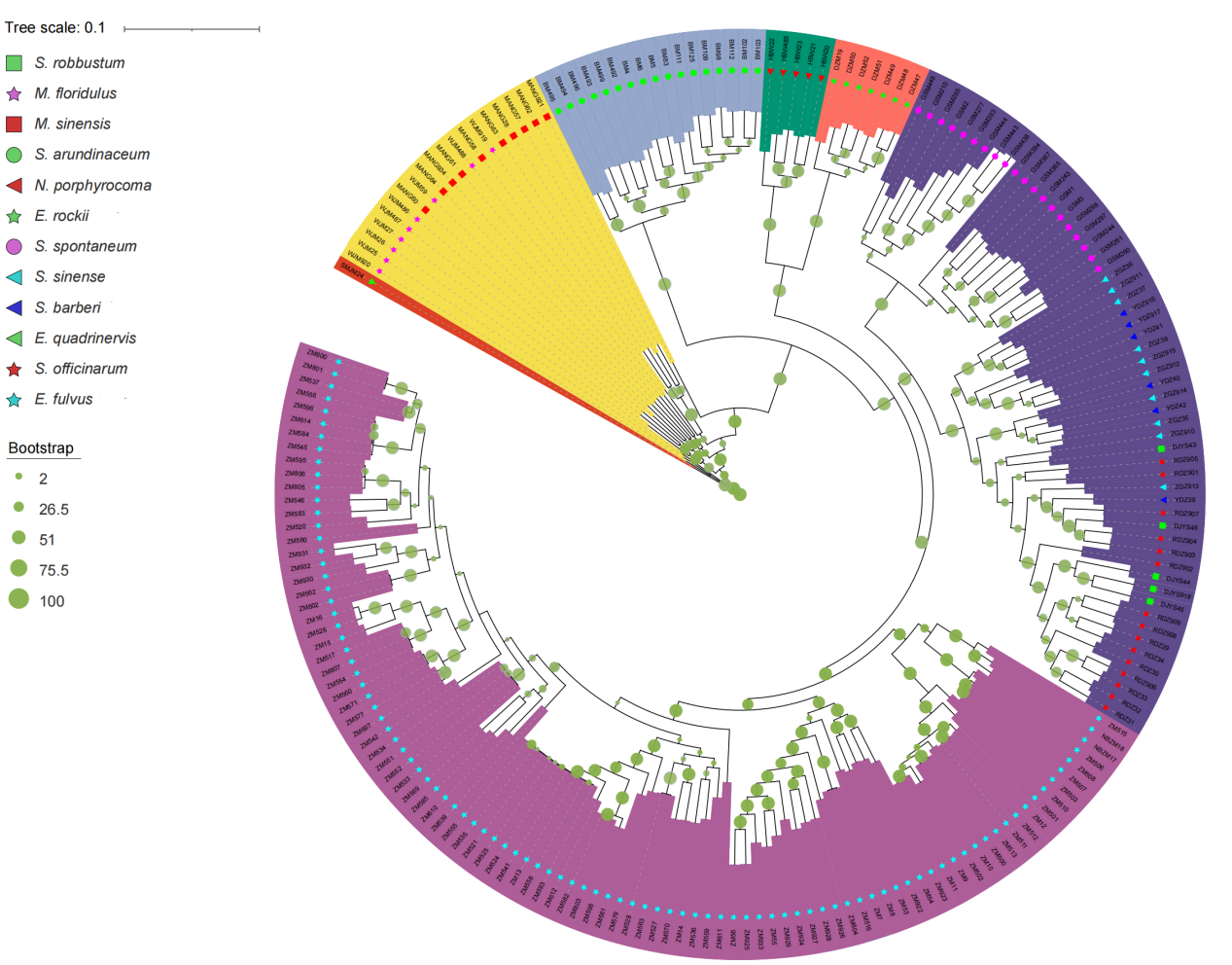 该成果利用混合测序方法构建E. fulvus染色体水平的参考基因组,同时利用该基因组重建了“甘蔗属复合体”(Saccharum Complex)的系统发育,再次确定了蔗茅与甘蔗的亲缘关系。同时还鉴定了SWEET基因家族,确定了10个生物质能源相关性状的ortho-QTL区域,这不仅有助于更好地理解糖代谢途径,而且可以促进生物质能源的育种工作。此外,研究还阐明了E. fulvus在冷胁迫下的反应,并对其耐冷适应特性进行了相关解析。