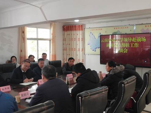 云南农业大学楚雄有机农业研究院一行人还参加了“前场镇调研定点帮扶工作座谈会”。座谈会由前场镇党委书记何瑞主持,云南农业大学黄鹤平副书记、姚安县副县长张中晖等领导出席,在前场镇驻村开展定点帮扶工作的云南农业大学老师参加了会议。镇党委书记何瑞介绍了前场镇农业产业目前遇到的一些问题,前场镇的山药和百合等的品质退化明显,其良种培育急待进行;完成有机认证的梨的生产基地3.33 hm2,但梨的种质改良手段目前仍仅为嫁接;饲料已成为制约全镇黑山羊、肉牛和生猪生产规模扩大的重要限制因子;养殖户制作青贮玉米饲料的技术严重不完善,全镇畜禽粪便的无害化处理技术更是完全缺失。张副县长指示,将黑山羊等培育为前场镇促进老百姓增收的关键产业。黄副书记指出,将前场镇重点农产品及其产业发展中的需求、任务变为项目,整合资源,着力将黑山羊、生猪和中药材等打造成前场镇的特色产业、特色品牌。会上,彭云教授和赵昶灵教授均表示,将结合前场镇重点农产品及其产业发展的需求以及云南农业大学专家所擅长的研究领域进行“牵线搭桥”,以推进前场镇乃至楚雄州有机农业的发展。